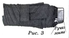 На первый взгляд зонт кажется круглым, а его купол напоминает часть сферы (сферический сегмент). Но если присмотреться, то видно, что купол зонта состоит из восьми отдельных клиньев, натянутых на каркас из восьми спиц (рис. 1). Сферическая форма в раскрытом состоянии достигается за счёт гибкости спиц и эластичности ткани, из которой изготовлен зонт.
