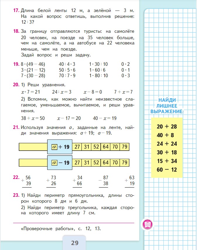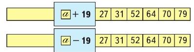 Используя значения а, заданные на ленте, найди значения выражения: а + 19; а – 19.
