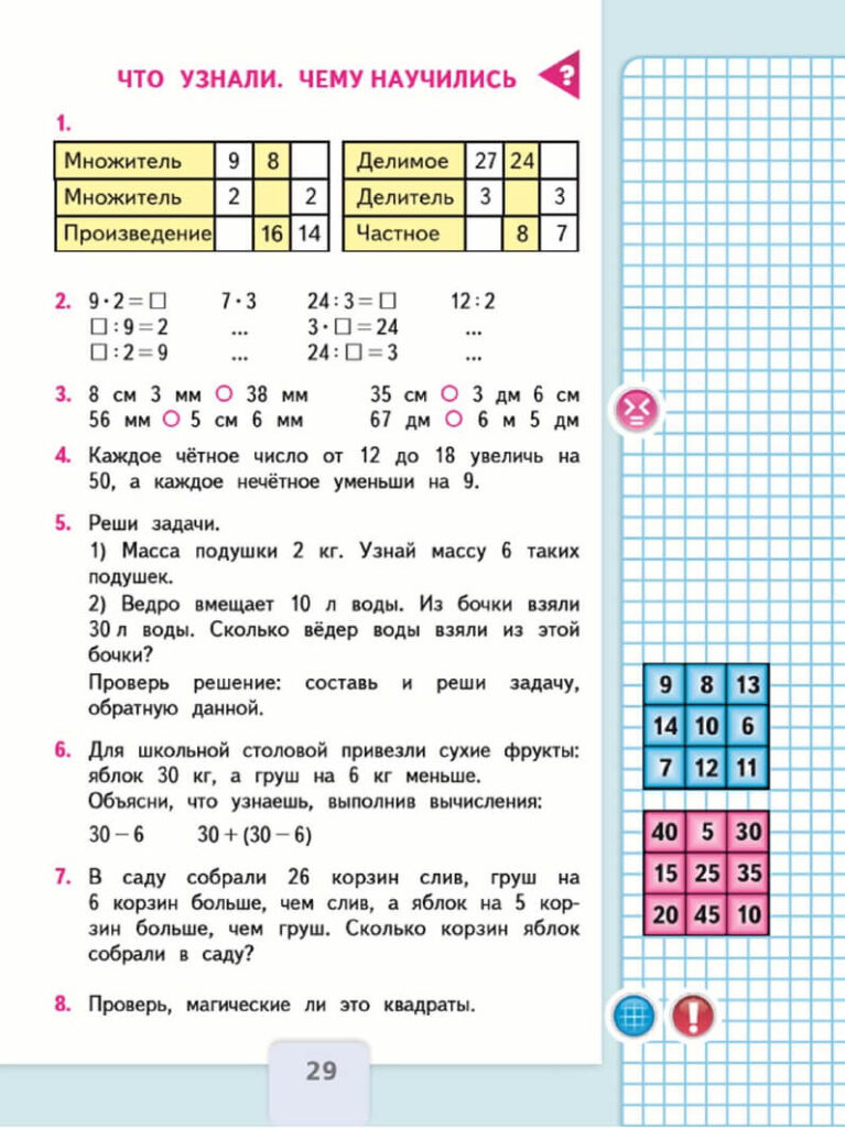 | ⬜ : 2 = 9 | … | 24 : ⬜ = 3 | … |