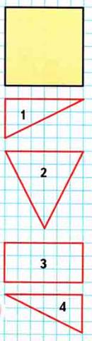 Квадрат можно составить из фигур 1, 2, 4 или 1, 3, 4.