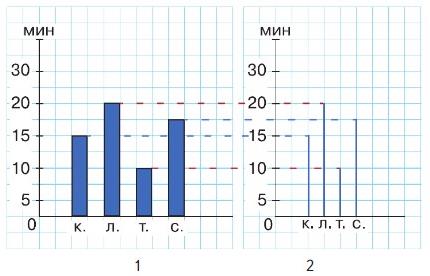 На диаграмме (рис. 1) показано, сколько времени каждая из четырёх одноклассниц затрачивает на дорогу от дома до школы.