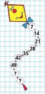 Указаны числа поочерёдно из таблицы умножения на 7.