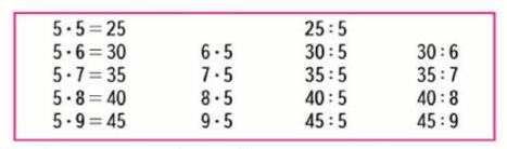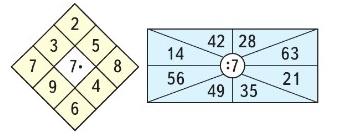 | 5 • 9 | 35 : 5 | 27 : 9 | 18 : (16 – 7) • 2 |