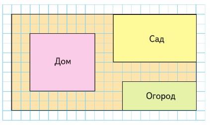1) Большие площади комнат, квартир, домов, земельных участков, городов и т. п. на бумаге изображают в уменьшенном виде. Например, на рисунке изображён план дачного участка, на котором за 1 м2 условно принята одна клетка. Площадь дома на плане 42 клетки, значит, настоящая его площадь 42 м2.