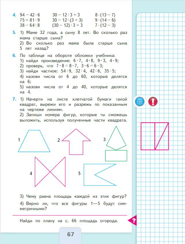 1) Маме 32 года, а сыну 8 лет. Во сколько раз мама старше сына?