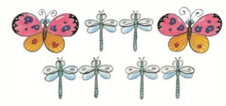 Рассмотри рисунок и скажи, во сколько раз бабочек меньше, чем стрекоз.