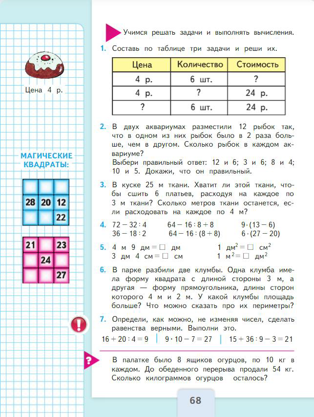 2) 12 : 3 = 4 рыбки в первом аквариуме;