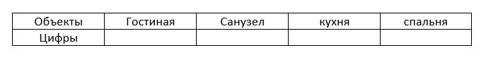 Задание 1: Для помещений, указанных в таблице, определите, какими цифрами они обозначены на плане. Заполните таблице, в бланк перенесите последовательность четырёх цифр.