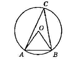 Если центральный и вписанный угол опираются на одну и ту же дугу, то вписанный угол равен половине центрального угла. В нашем случае центральным является \angle AOB, вписанным \angle ACB и они упираются на дугу AB.