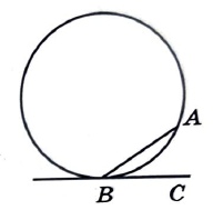 На окружности отмечены точки A и B так, что меньшая дуга AB равна 26°. Прямая BC касается окружности в точке B так, что угол ABC острый. Найдите угол ABC. Ответ дайте в градусах.