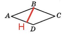 Площадь ромба находится по формуле \displaystyle S=a \cdot h, где a – длина стороны ромба, h – высота.