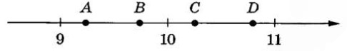На координатной прямой отмечены точки A, B, C и D. Одно из них соответствует числу \sqrt{85}. Какая это точка?
