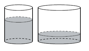 Найдем уровень жидкости через объем сосуда. Сосуд у нас имеет форму цилиндра, а объем цилиндра находится по формуле V=\pi R^2 h, где R – радиус основания, h – высота.