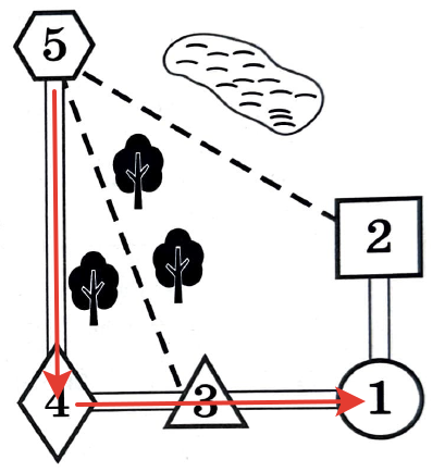 Из задания 1 мы определили, что станция Таировка обозначена номером 1, село Федяево – 2, поселок Демидово – 3, деревня Ключи – 4, деревня Царево – 5.